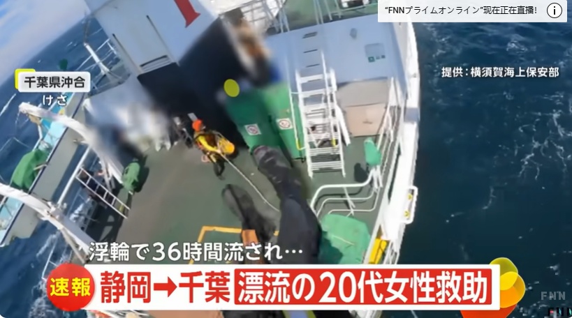 据日媒报道,10日早晨,一艘正在千叶县南房总市海岸航行的货轮发现了该女子,接到求助的货轮船员跳进海里将其救起。