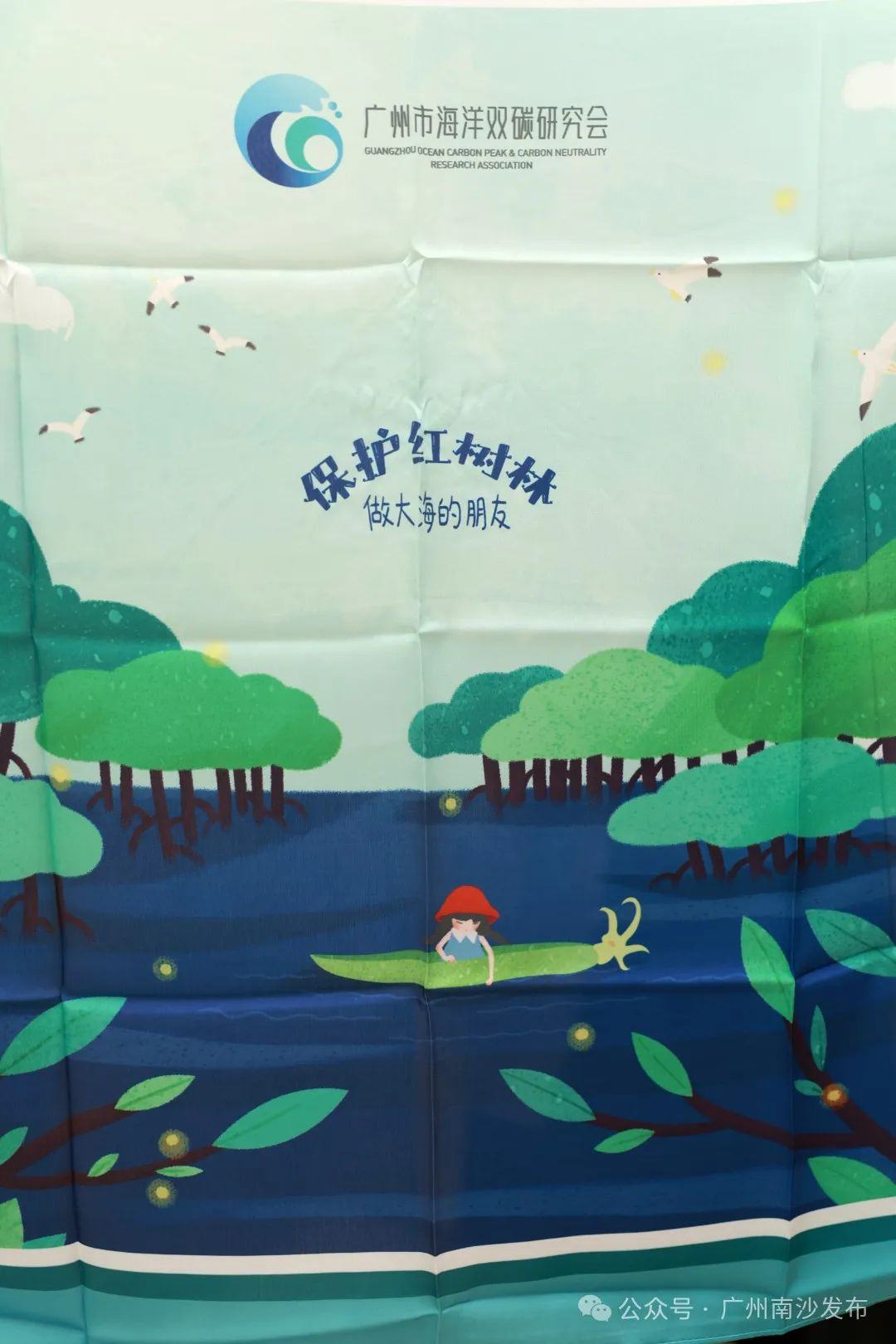 7月11日下午,在坦头村图书馆的红树林主题科普处,小南看到了广州市海洋双碳研究会带来的丝巾实物。