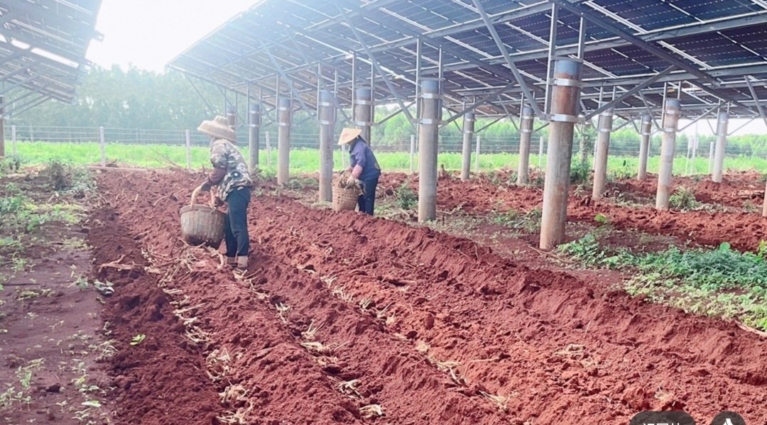 高良姜为姜科山姜属植物,生长周期3-5年,是我国南药传统药材,具有较高的药用和食用价值。基于高良姜喜半荫蔽特性,光伏板下空间为其提供了良好的生长环境,五一农场选择在光伏板下种植良姜,不仅可以充分利用土地资源,提高农业生产效率,又符合国家倡导的绿色环保农业趋势,为农场经济发展注入了新的动力。