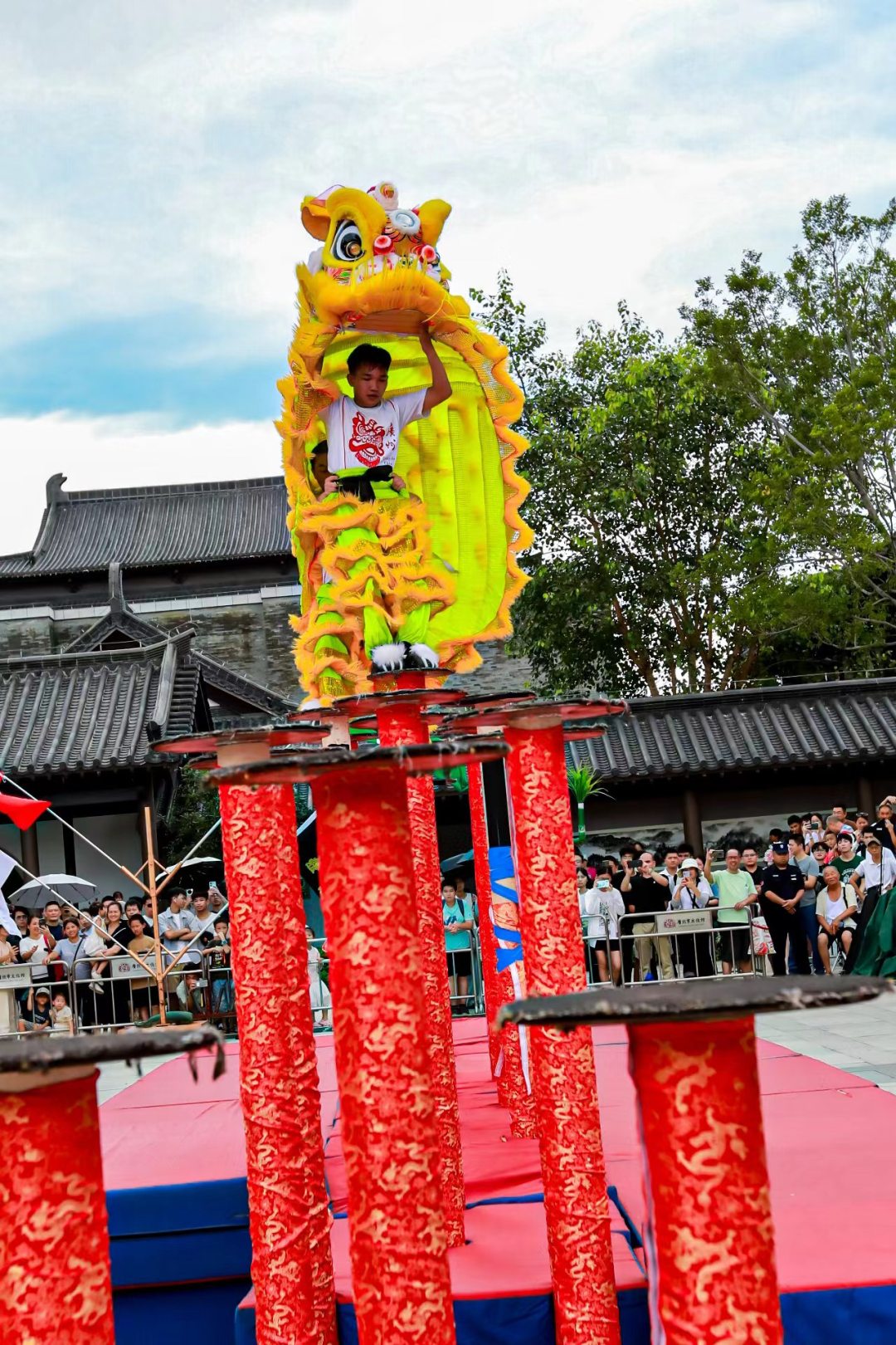 本届广州青少年醒狮表演赛启动仪式除了具有高桩实力的广州队伍,还有大湾区的佛山、香港、澳门狮队,同时广州市龙狮协会还邀请了马来西亚精英狮队,他们在高低起伏、象征峭壁悬崖的高桩上施展连弹飞跃、腾空旋体的绝技,时而低俯探寻,时而仰天咆哮,群雄角逐问鼎中心阁!众“狮王”将展示逼真形态、高超技艺的顶流风采,令现场观众大呼过瘾。