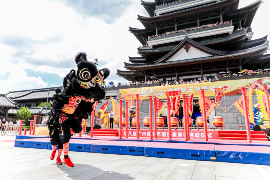 由广州市文化广电旅游局主办,广州市龙狮协会、广州市非物质文化遗产保护中心承办的“第八届广州青少年醒狮表演赛启动仪式暨迎十五运高桩狮王争霸”7月13日下午在广州市文化馆中心阁广场举行。