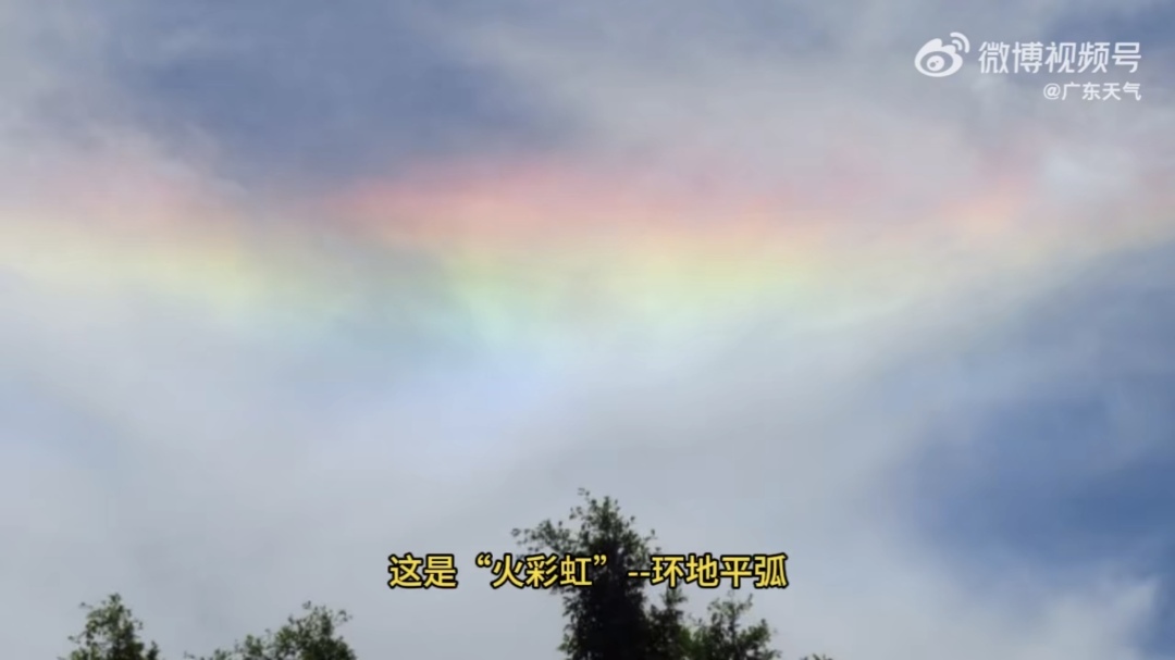 13日,有网友“@带刺玫瑰--”在广州拍到了罕见的“火彩虹”环地平弧。气象部门表示,因为对太阳高度的需要不同,环地平弧比环天顶弧更为罕见。