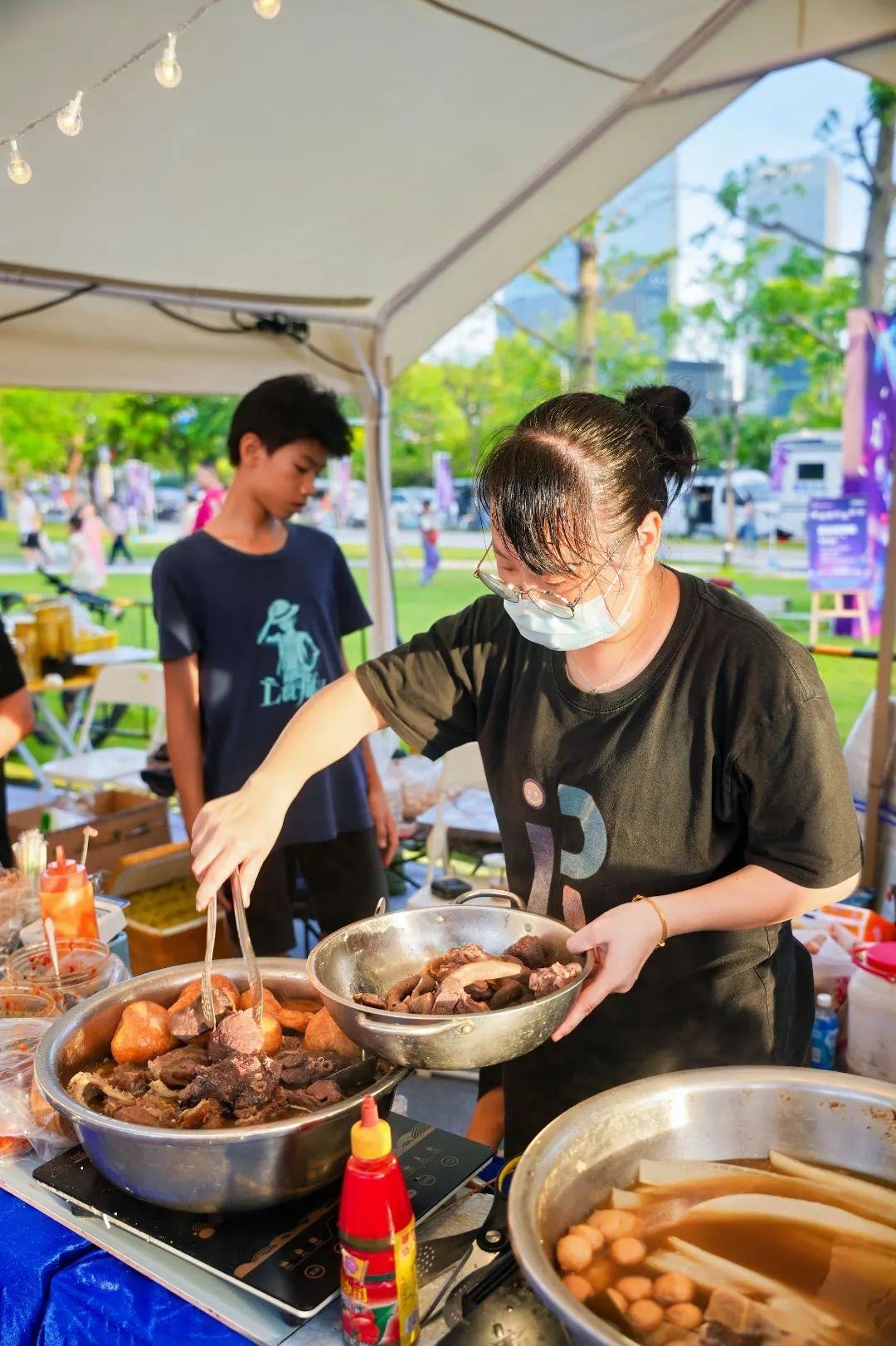 本次活动采用了“音乐+美食+社交”的特色业态,设置观演区、集市区、游戏区、天幕帐篷区、“百千万工程”主题展览区等区域,打造夏日帐篷露营、美食文创集市、网红打卡装置、趣味游戏互动等一系列与音乐演出场景共生的文化体验活动,助力横沥提升城市烟火气息。