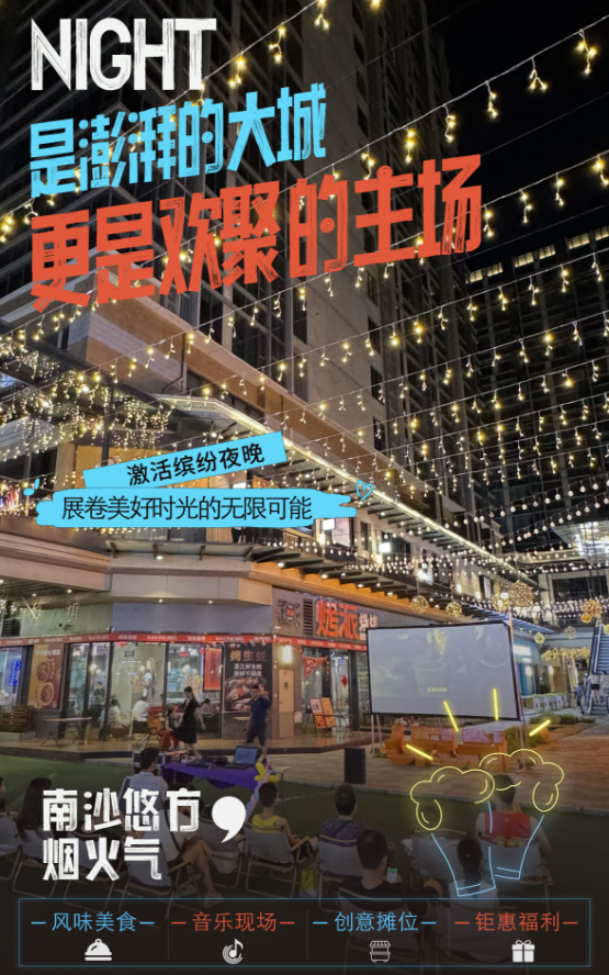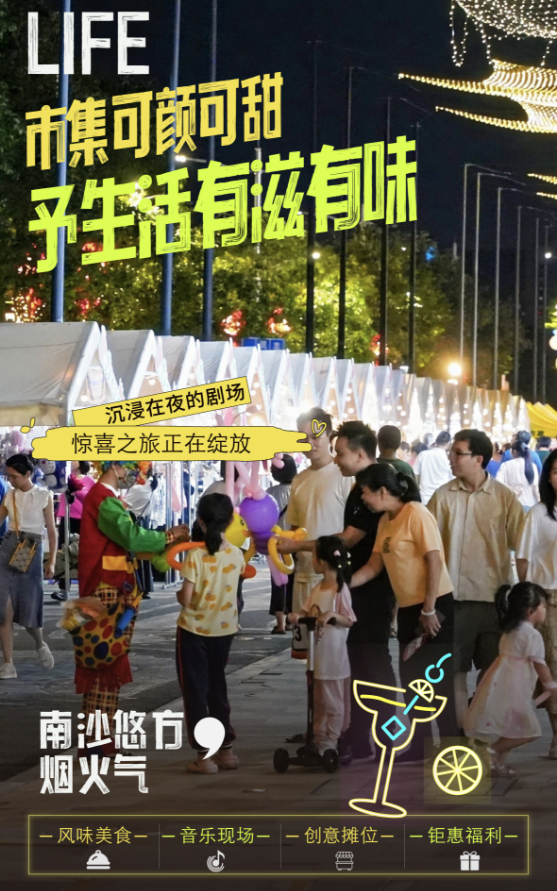 此外,南沙在暑假期间组织了一系列围绕“夜经济”的活动,南沙天后宫夜游、南沙客运港夜航线路……人气“聚”起来了、商家“火”起来了、夜经济“热”起来了,城市烟火气不断升腾。一幅年轻、惬意、有活力的生活图景在南沙徐徐展开,并日渐丰富、精彩。