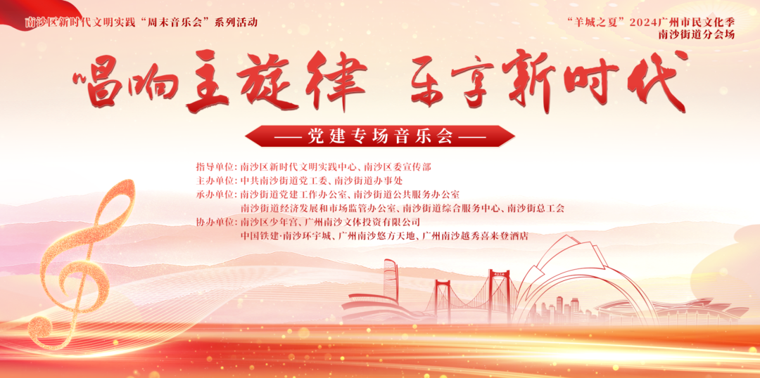 7月16日(星期二)晚上,南沙区新时代文明实践周末音乐会系列之“唱响主旋律 乐享新时代”党建专场音乐会与您相约南沙区少年宫海星剧场。音乐会将从“唱响主旋律”“乐享新时代”“同心谱华章”三大篇章进行演绎,为市民献上一场视听盛宴,让南沙越夜越精彩!