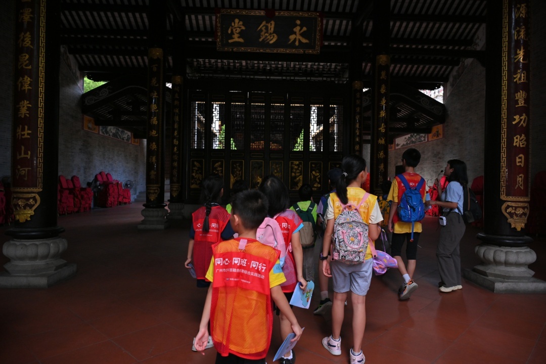 在“开FUN课”融合教育综合实践的研学活动中,普通孩子和特殊孩子们手牵手,一同参观猎德村史博物馆,了解猎德村的历史变迁,领略独特的文化特色。志愿者和老师带领孩子们制作手工龙舟,感受广府文化的深厚底蕴和独特魅力。祠堂一侧也成为了多元艺术共创体验课堂,孩子们在老师的引导下创作,用绘画、手工等多种艺术形式,在创作中表达自己。
