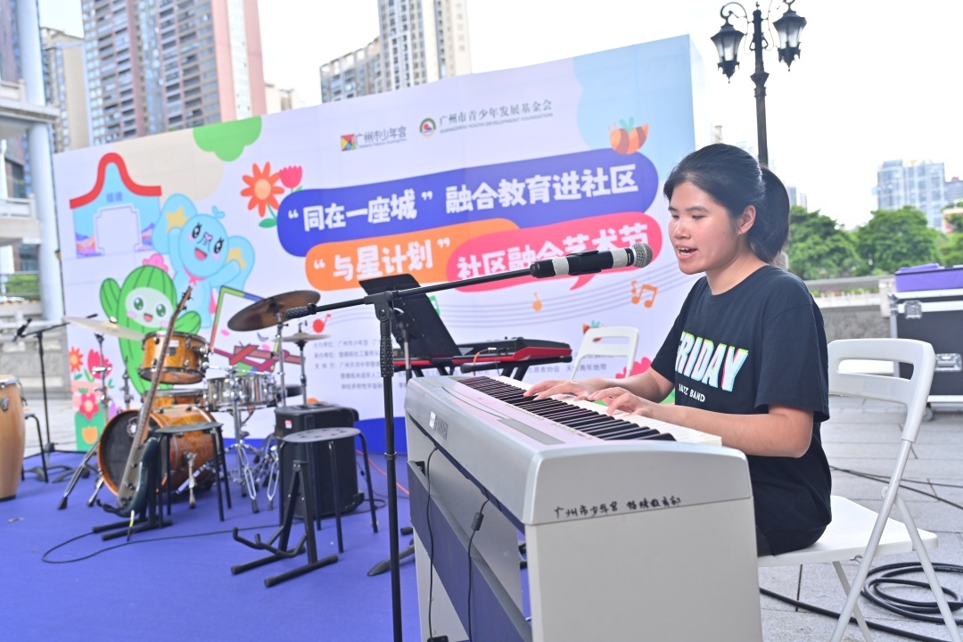 近日,在猎德村祠堂广场大树下,广州市少年宫“雨后彩虹”融合艺术团和天河中学猎德实验学校的孩子们,带来了一场别开生面的音乐会。“与星计划”社区融合艺术节在天河区“猎德人家”举行。当日,象宝启星社区融合艺术团正式成立。在艺术展演舞台上,普通孩子和特殊孩子一起同台表演,向市民展示广州融合教育新成果。