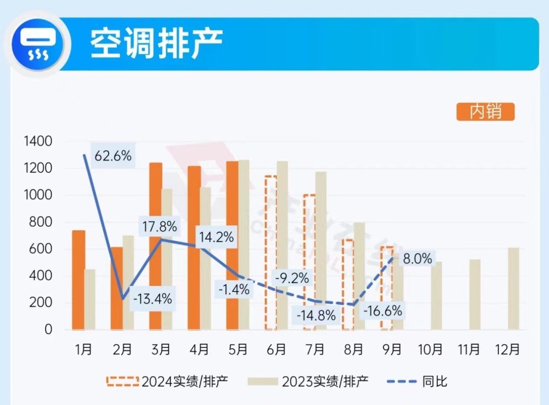 3、4、5月,空调厂家预判今年夏天销售会大幅增加,纷纷加大排产,今年的产量比去年有所增长。来源:产业在线