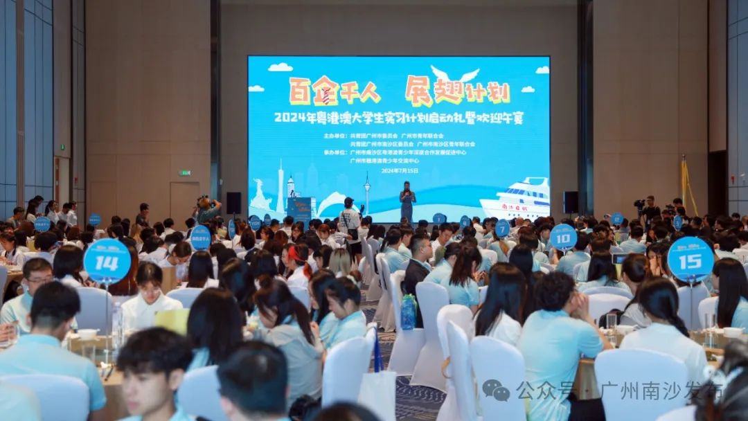 7月15日,由共青团广州市委员会、广州市青年联合会、共青团广州市南沙区委员会、广州市南沙区青年联合会联合主办的“百企千人”“展翅计划”——2024年粤港澳大学生实习计划启动礼在南沙举行。粤港澳三地相关部门负责领导、嘉宾,粤港澳青年学生、企业代表及媒体嘉宾等约450人参与活动。