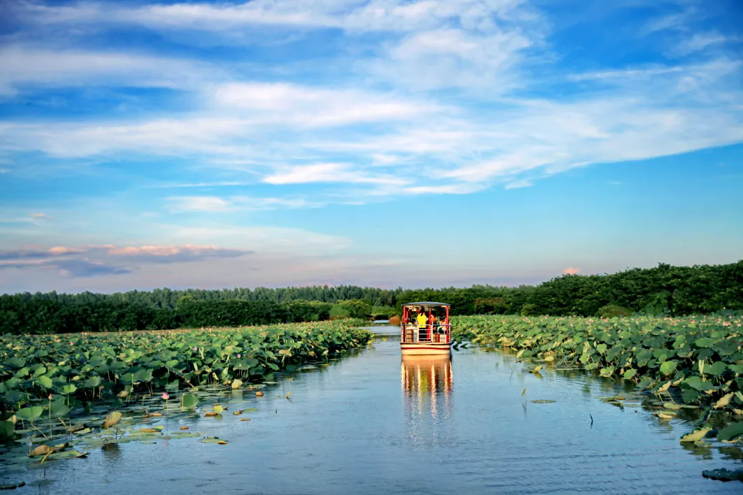 盛夏来临,南沙湿地荷塘百亩荷花竞相怒放。恰逢南沙湿地第三届荷花文化节,暑假期间,不妨一家人来到南沙湿地,可以乘船游览荷花河道,收获充满诗意的体验;也可以到渔唱晚生态精品民宿打卡,品尝精美的荷花宴。