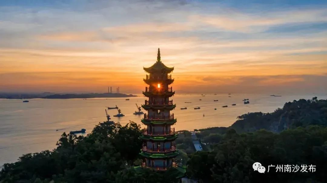 傍晚时分来到南岭塔,可以俯瞰大海,欣赏日落时分的绝美晚霞。入夜后,站在天后宫至高点看灯火阑珊的珠江口夜色,感受南沙的璀璨魅力。