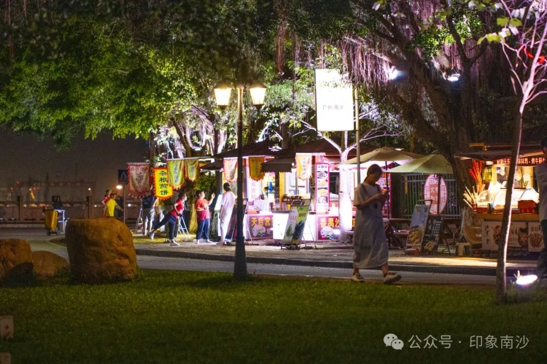 南沙天后宫定期举行夜间演艺活动,还有琳琅满目的古风市集,十分热闹。