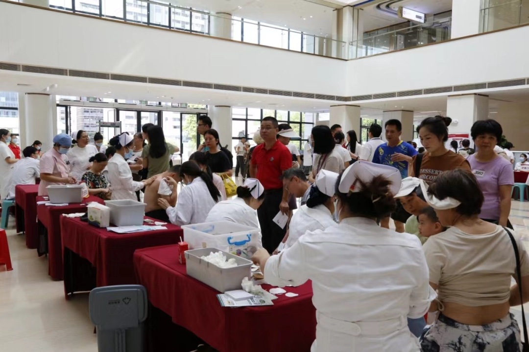 2024年7月15日是初伏,也正式迎来了广东人最热闹“养生局”——三伏天灸。在广州医科大学附属中医医院天河院区的门诊大厅举行的三伏天灸活动也吸引了不少周边市民前往“趁墟”,针灸康复科、妇科、儿科、治未病科、乳腺科、护理门诊等科室举办了联合义诊,方便市民对三伏天常见的健康问题进行咨询和问诊。