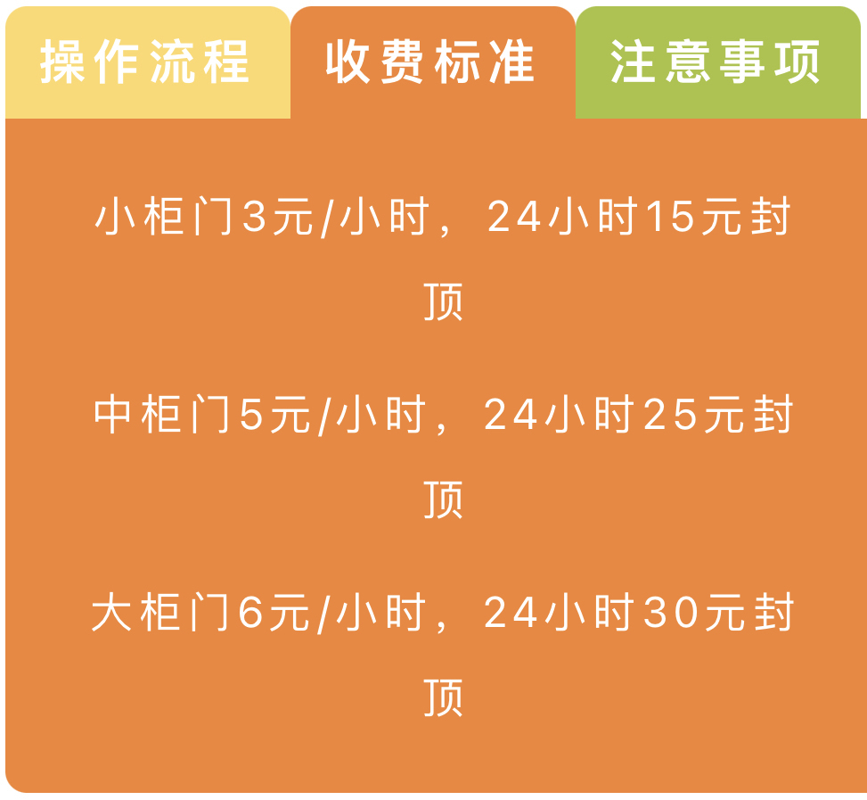 记者留意到,上海、佛山的行李寄存柜,都包含小、中、大三种规格,大型规格寄存箱最大可存放28寸甚至29寸行李箱。佛山进一步公布了收费标准,小柜3元/小时,24小时15元封顶,中柜5元/小时,24小时25元封顶,大柜6元/小时,24小时30元封顶。