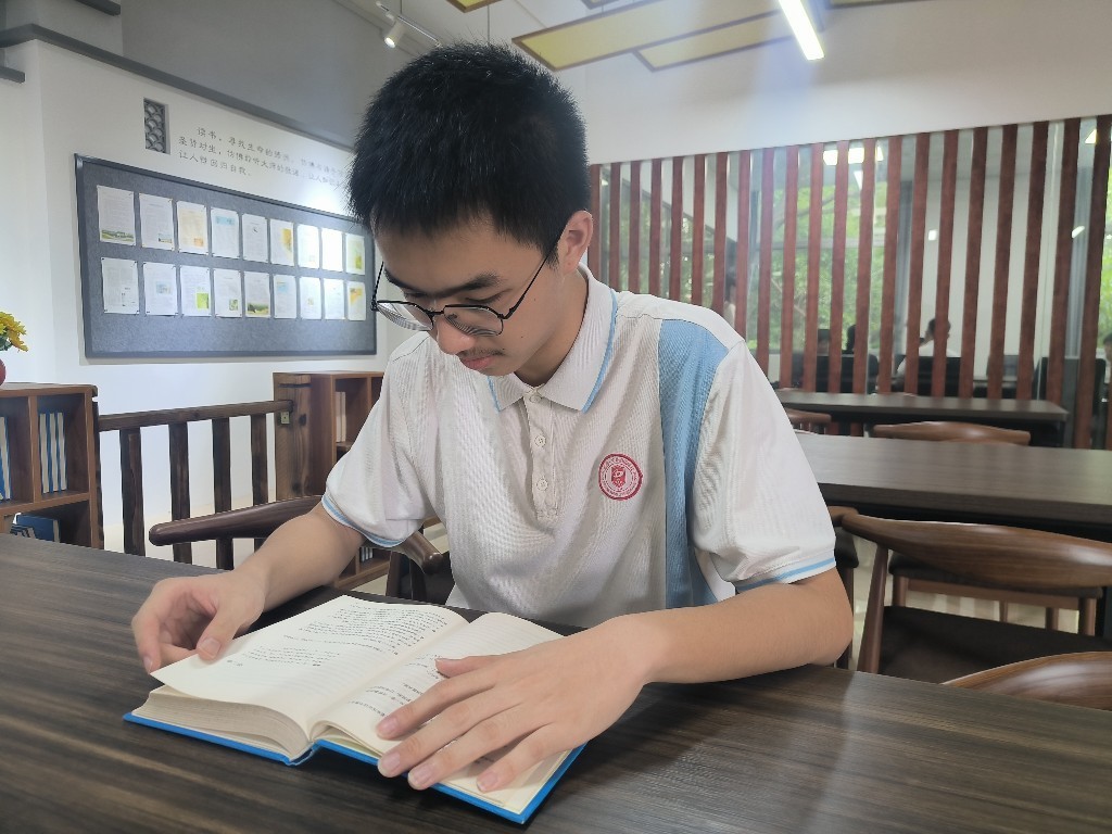 阅读是黄浩宇增长见识、提升人文修养的一种方式。初三期间,他阅读了大量的人物传记、散文类书籍。而在中考结束后,出于放松的考虑,他迷上了武侠小说。