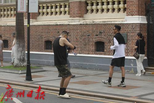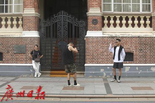 一处历史建筑前,“我在广州沙面很想你”的标语吸引游客纷纷打卡。