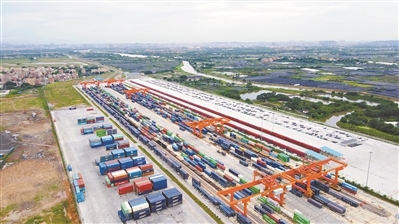 在广州国际港,大批跨境电商货物等待搭乘中欧班列“出海”。图/广州日报新花城记者庄小龙 通讯员叶小亮