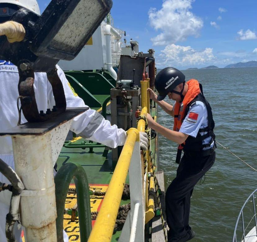 “接到救助后,我们第一时间上报总站,加急签发登轮许可证,并奔赴锚地办理入境通关手续。”黄埔边检站执勤三队队长叶关辉介绍说,由于锚地距离办证窗口有几十海里,需当天早上出发前往珠海,再坐船登轮办理相关手续,完成勤务回到单位已经晚上了。