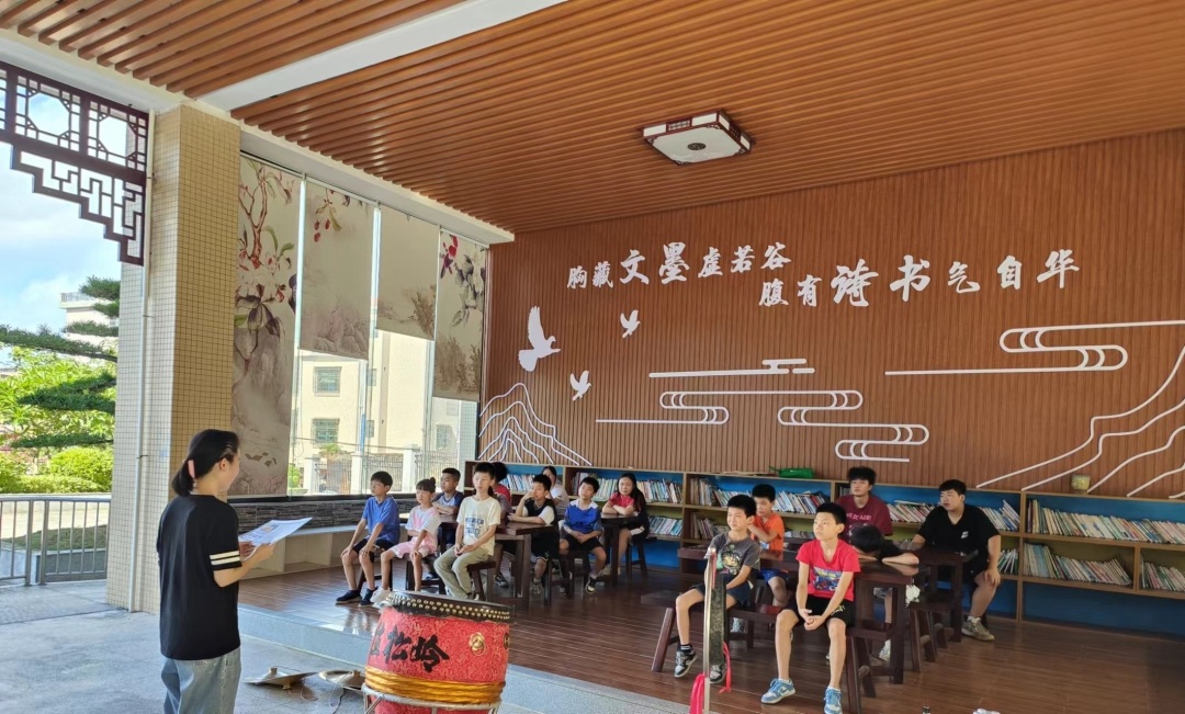 据了解,当日开学的培训班教学将持续到12月30日,每天5.5个学时共计47天。其中,7月和8月周一至周五授课,9月后逢周六训练。教学团队由省级非遗传承人张永木师傅带领的6人团队,授课内容包括锣鼓镲教学、武术教学、舞貔貅教学、交盒贴教学等。