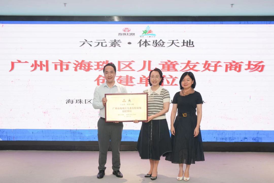活动现场,主办方向六元素体验天地授予“儿童友好商场”牌匾。六元素体验天地是广州琶洲会展片区首个大型综合购物中心,华南首家儿童主题Family Mall,场所建筑面积11万平方米,其中儿童专属区域3.5万平方米,一层、二层、三层着力打造以儿童体验为核心的亲子教育体验基地。同时,商场的设计理念是以儿童为中心,旨在为家庭提供一个安全、舒适、有趣的购物环境。商场内设有多个儿童游乐设施,如室内游乐场、亲子DIY工坊,还有专为母婴群体提供的母婴室、休息室。