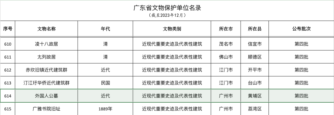 广东省文物保护单位名录(部分)。图/广州市人民政府网站