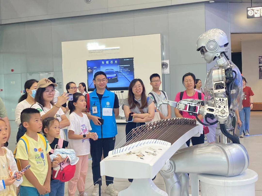 随后来到自由体验区,孩子们在社工的指引下,自由选择自己感兴趣的体验项目。他们在弹古筝的机器人面前驻足,不禁发出阵阵赞叹。孩子们还坐上了元宇宙汽车体验椅,感受科技带来的无限魅力。