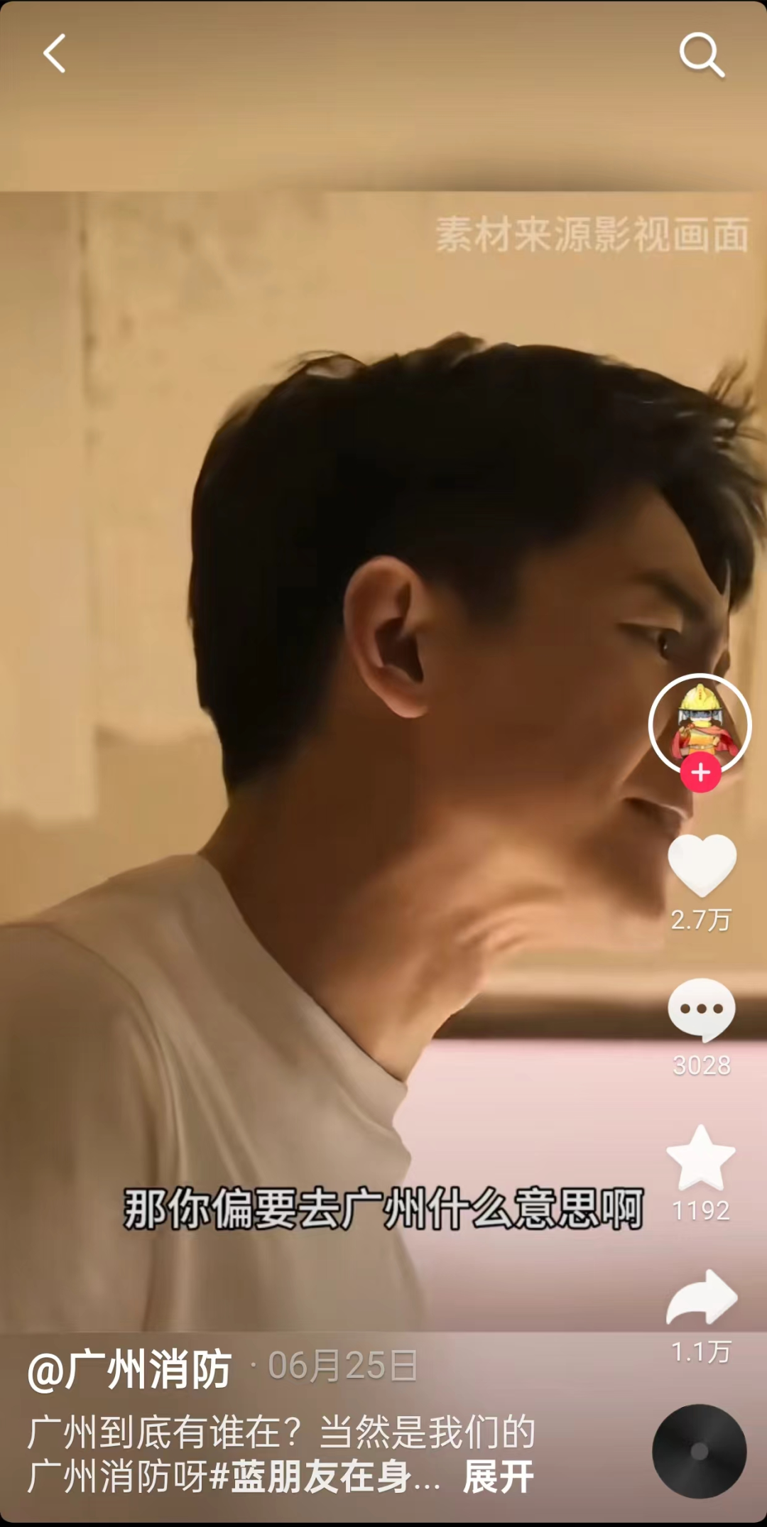 6月25日,“广州消防”抖音号积极参与“北京到底有谁在”城市版二次创作,发布短视频《广州到底有谁在?当然是我们的广州消防呀》,将原台词“北京”改为“广州”,转场消防救援画面,并加挂#蓝朋友在身边#、#把林更新硬转到全国各地#、#转场天花板#等抖音热门话题,普及“遇到火灾不要慌,及时拨打119”等消防常识。目前,该视频收获2.7万点赞、1.1万转发。一方面,广州消防“北京到底有谁在”二创获网民肯定。“这更厉害,直接把台词改了”“你这广州改的还挺自然的”“改得毫无违和感”等占据评论区前列。另一方面,网民主动加入宣传队列,跟评推荐广州特色美食,进一步提升互动效果。如“广州有吃不完的猪脚饭”“广州有早茶”。