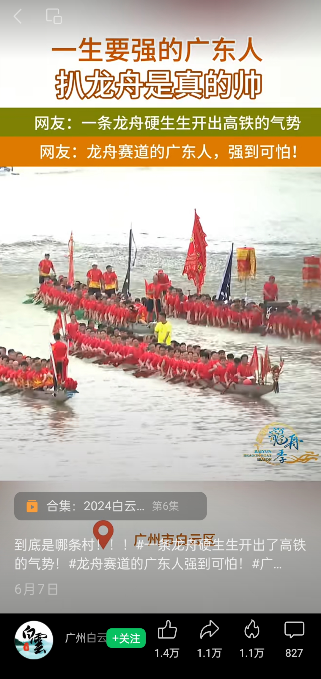 广州白云发布:视频置顶“扒龙船”精彩瞬间,助力推广龙舟文化活动