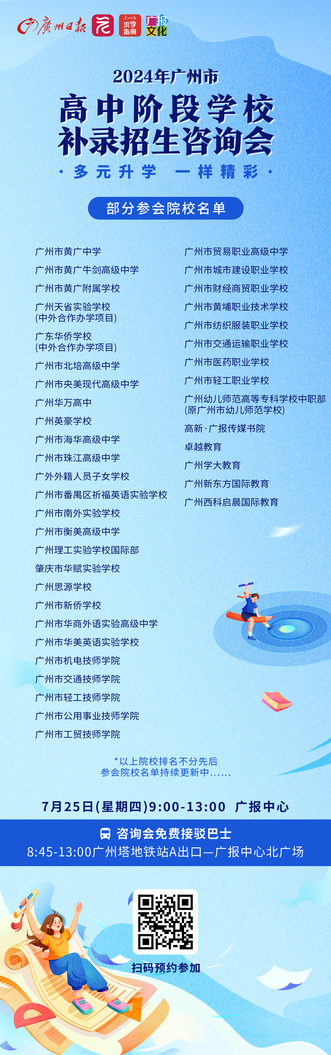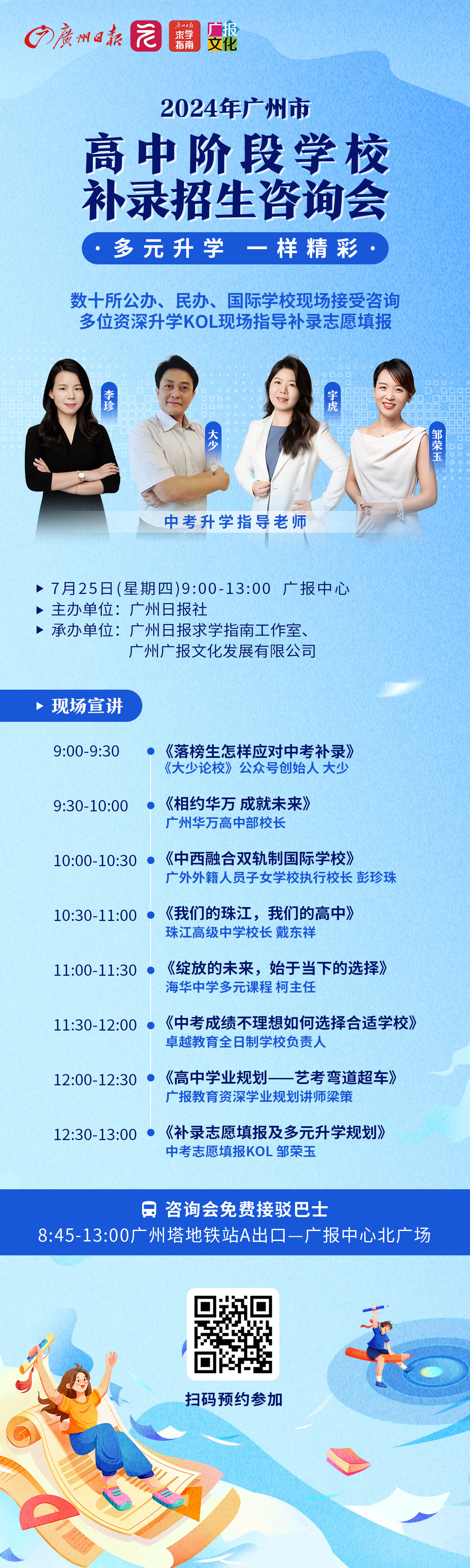 就在7月25日,补录计划公布的同一天,将有一场补录咨询会在广报中心举行,届时有需要的考生和家长可现场与相关学校老师面对面交流,更可获取更多关于今年补录的信息。