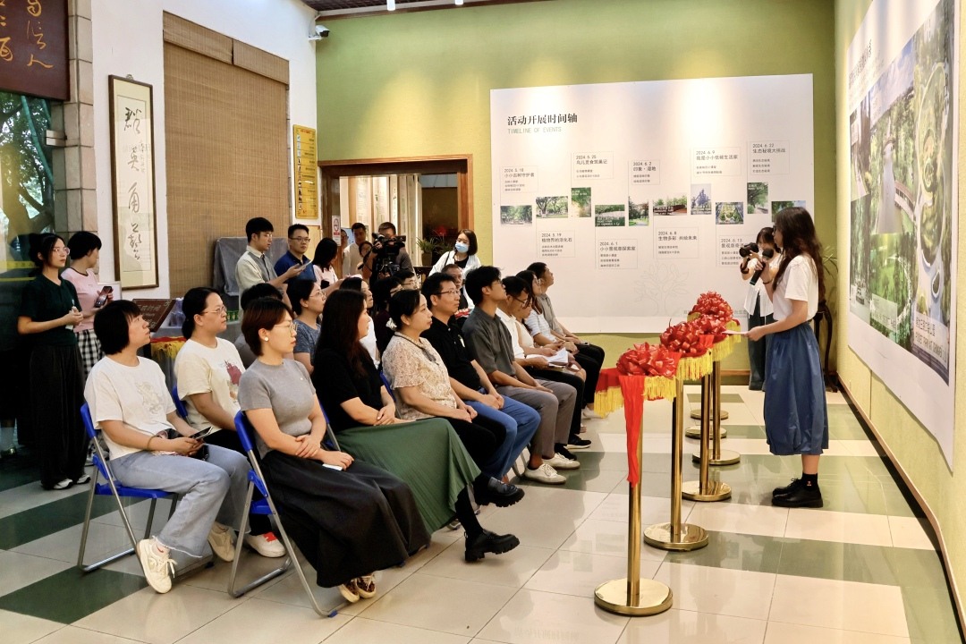 华南农业大学林学与风景园林学院副院长高伟、副教授程晓山、艺术老师李静,以及荔湾区住房建设和园林局、广州文化公园(荔湾区公园管理中心)等单位的相关负责人出席。高伟表示,此次成果展是国家植物园体系建设在荔湾区积极探索与实践的集中展现,不仅展示了荔湾区在科普教育、生物多样性保护、生态修复等方面取得的显著成效,更彰显了坚持绿色发展道路、推动生态文明建设的坚定决心。荔湾区住房建设和园林局相关负责人表示,荔湾区生态科普宣教点不仅是国家植物园体系的重要的组成部分,还肩负着传播植物科学知识、弘扬生态文明理念的重要使命。