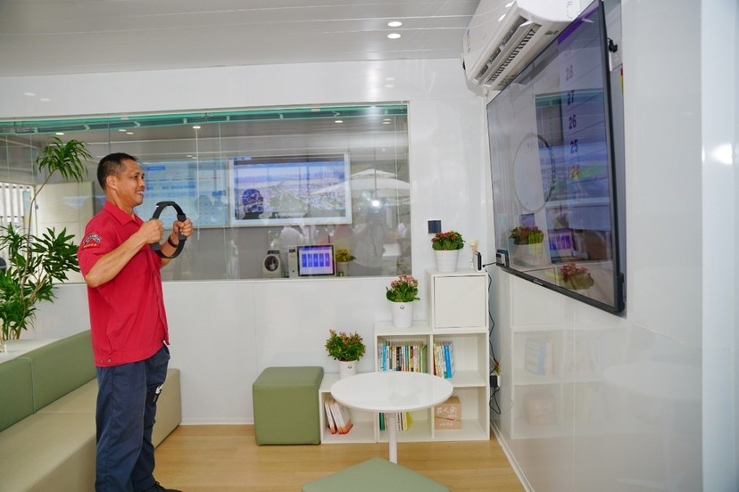 走进总站多功能室,按摩椅、书籍报刊、带有虚拟体验功能的压力调适设备等各种关爱设施一应俱全,以多种方式满足车长们和户外劳动者们的休息需求。在总站工作多年的李车长高兴地说:“有了这个多功能室,我们车长平时工作完回到总站,累了能躺下休息,又能读读书或者玩玩游戏放松心情,让我们能继续以精神饱满的状态投入工作,感受到了分公司对职工多维度的关怀!”