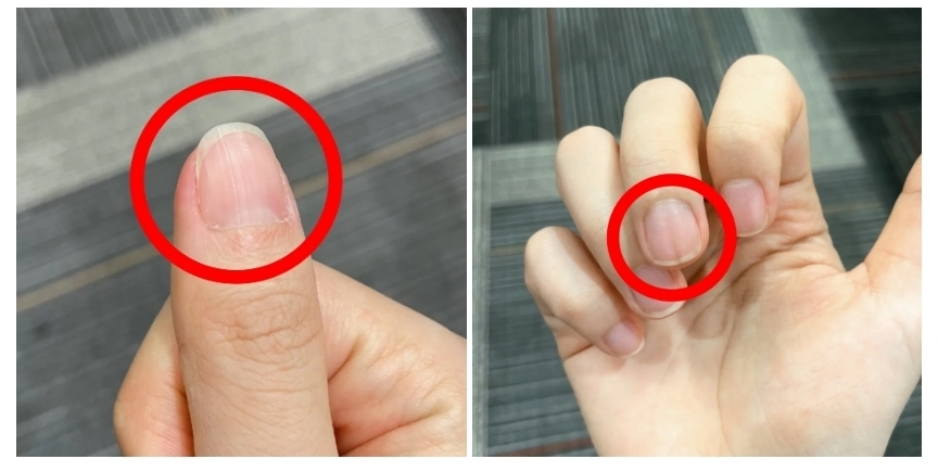 如果指甲发白,且明显增厚时,尤其多见于趾甲,要注意甲癣(灰指甲)的可能性。