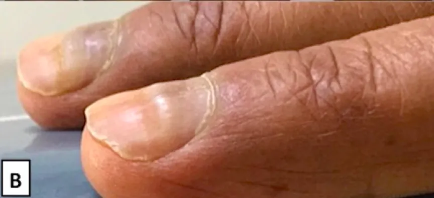 博氏线(图片来源:Jandial A, Mishra K, Prakash G, Malhotra P. Beau's lines. BMJ Case Rep. 2018 Mar 28;2018:bcr2018224978. doi: 10.1136/bcr-2018-224978. PMID: 29593008; PMCID: PMC5878284.)