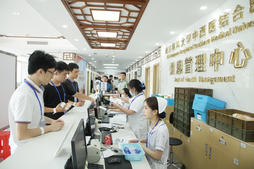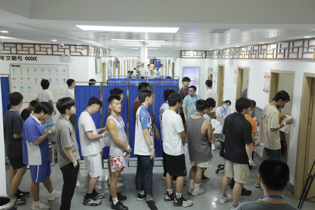 7月22日上午,记者在设于南方医科大学中西医结合医院体检中心的海珠区征兵体检站看到,应征青年们在现场工作人员的指引下有序编组,依次接受血检、外科、内科、眼科、心理测试等科目检查,整个过程井然有序。