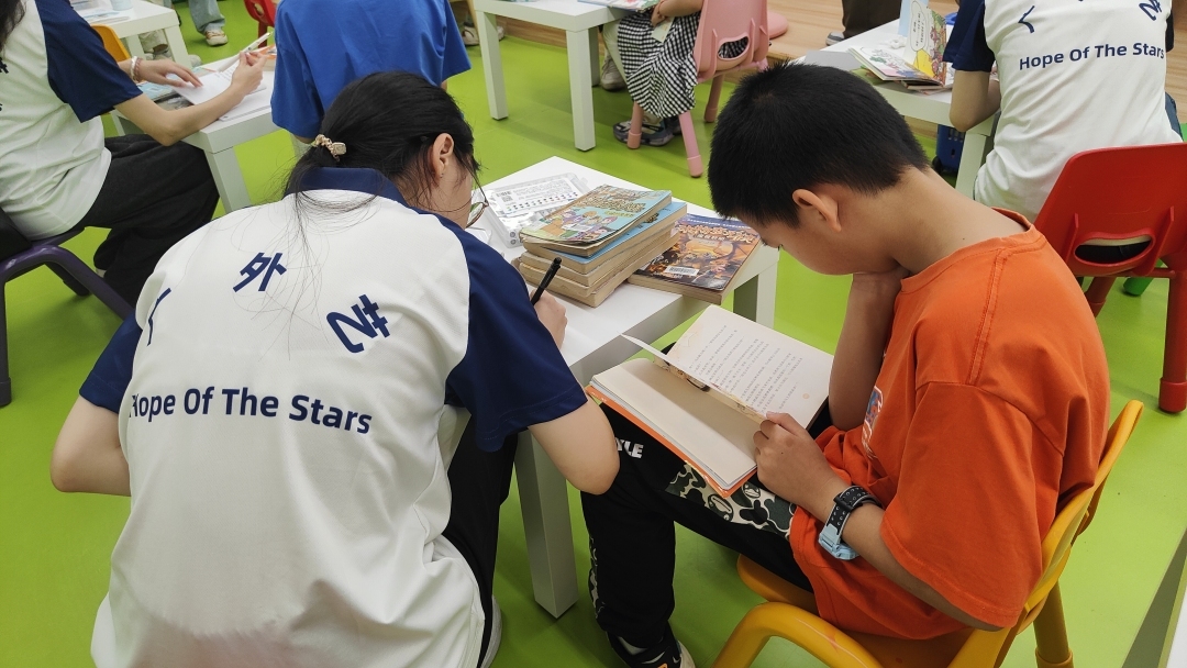活动开始前,实践队成员接受了专业培训,学习伴读技巧与桥梁书籍的选择,有针对性地选择文化主题书籍和制作绘本分享PPT,确保为孩子们提供贴心且专业的阅读体验。在伴读过程中,他们通过一对一互动、创意绘画、游戏、故事复述等方式,帮助孩子深化理解,克服阅读障碍。