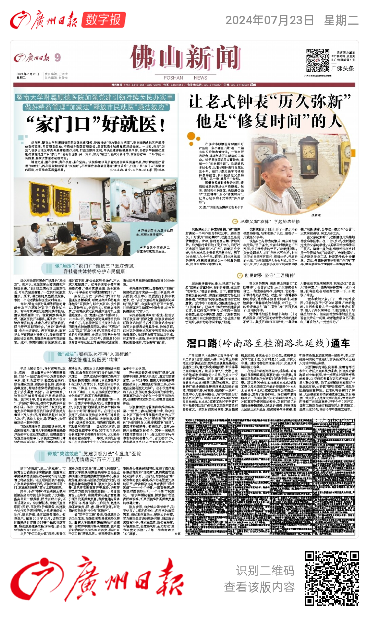 实际上,为进一步深化“家门口”的健康服务新举措,顺德近年来推动健共体建设“五到家”,即专家到家、技术到家、药物到家、信息到家、医保助推到家,方便群众就近获得基本医疗和卫生健康服务。在“党建+业务”的推动下,2022年7月,暨南大学附属顺德医院作为牵头方,与容桂社区卫生服务中心共同组建容桂健康共同体,通过“五到家”以及“两病”同质化治疗,医院及社区门诊机构有效调整,分级诊疗效果十分明显。数据显示,2023年,该院超1000名患者享受社区上转医院的优惠政策,由社区开单医院检查检验项目3000余项。