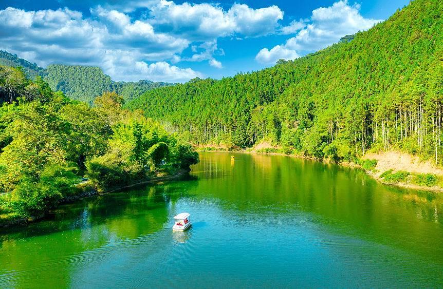 无论是草地野餐露营、森林美景、各种打卡点都非常出片,景区被群山包围,微风拂过湖面,波光潋滟,美不胜收,也被誉为韶关“小洱海”。