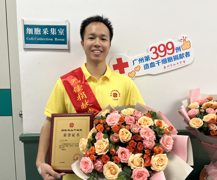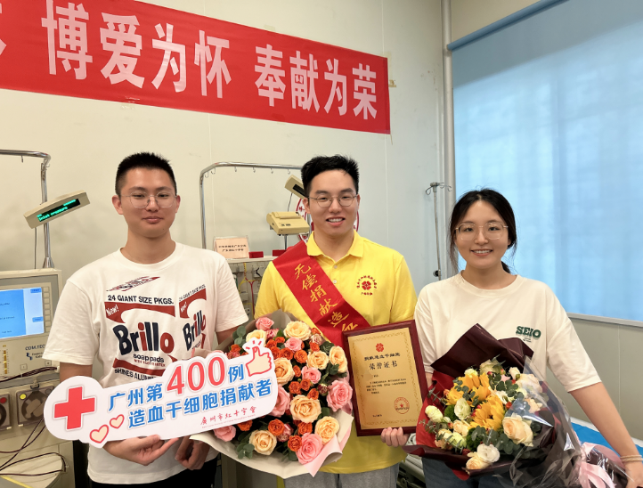 而第400例捐献者李先生是华南师范大学的一名在读研究生。他在天津读大三时了解到造血干细胞捐献对患者的重要性后,与室友双双登记为捐赠志愿者。四年后,得知与一名血液病患者初配成功,作为一名在读研究生的他虽然科研时间紧张,但想到自己的细胞能帮助患者活下去,他便义无反顾地答应捐献。经与家人、老师、朋友沟通后,他更是获得大家的支持。