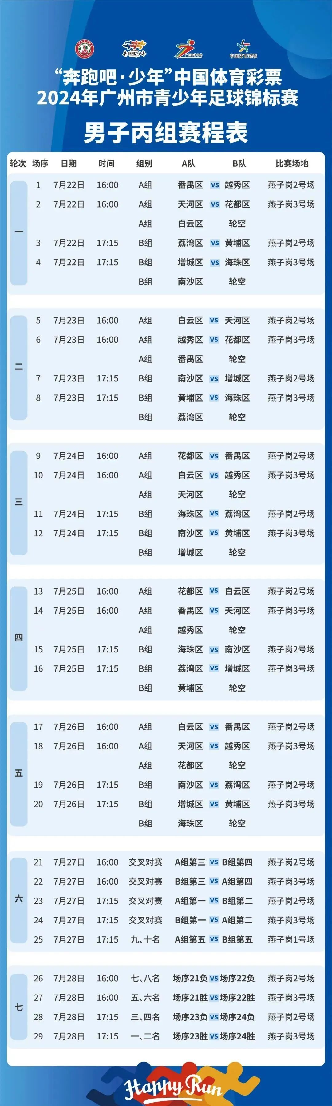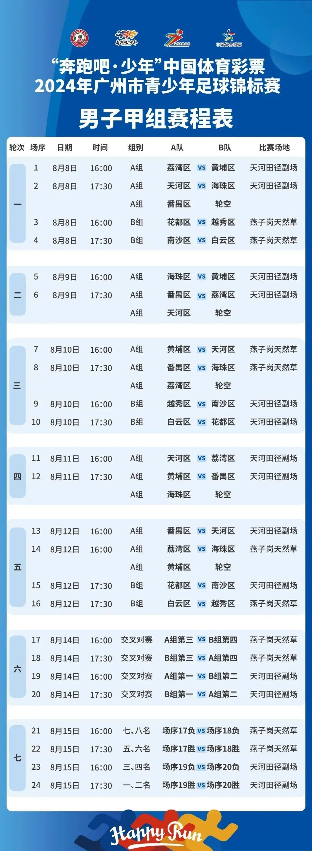 男子全组别赛程:
