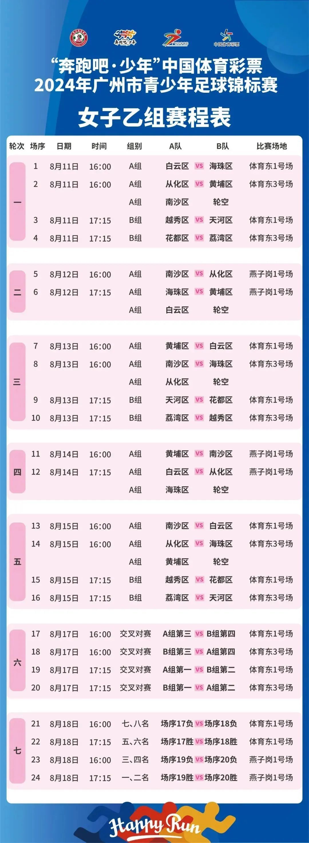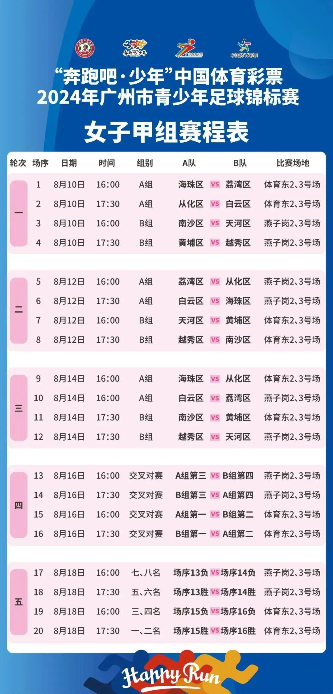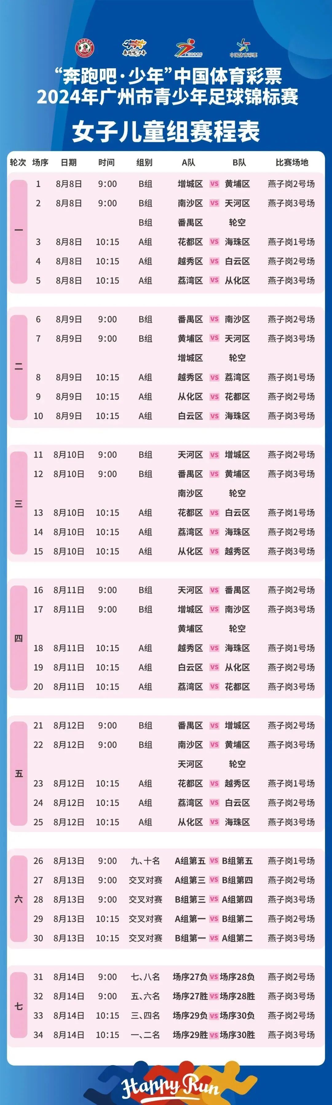 女子全组别赛程: