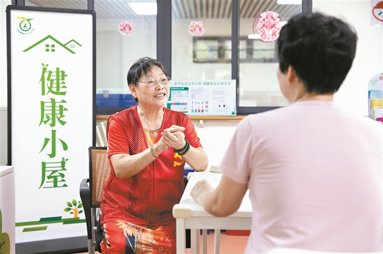 昨日上午9时不到,75岁的退休街坊刘燧文套上红马甲,来到距离家门口不到200米的沙顶社区邻里服务中心。在这里,她的身份从一名有数十年从医经历的退休街坊变成有两百多名社区粉丝的社区合伙人,每周在此向街坊提供免费健康咨询服务。