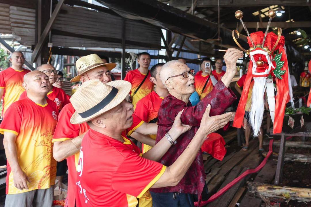 骏水仪式热闹了一整天。罗伟健还特意请了村里年纪最长的长者回村指点仪式。骏水后,“老龙”停泊在康乐涌藏船的地方。之后,再择一个吉时,村民会将“老龙”藏归水底,待到明年,“我们肯定要再将它用起来。”罗伟健说。