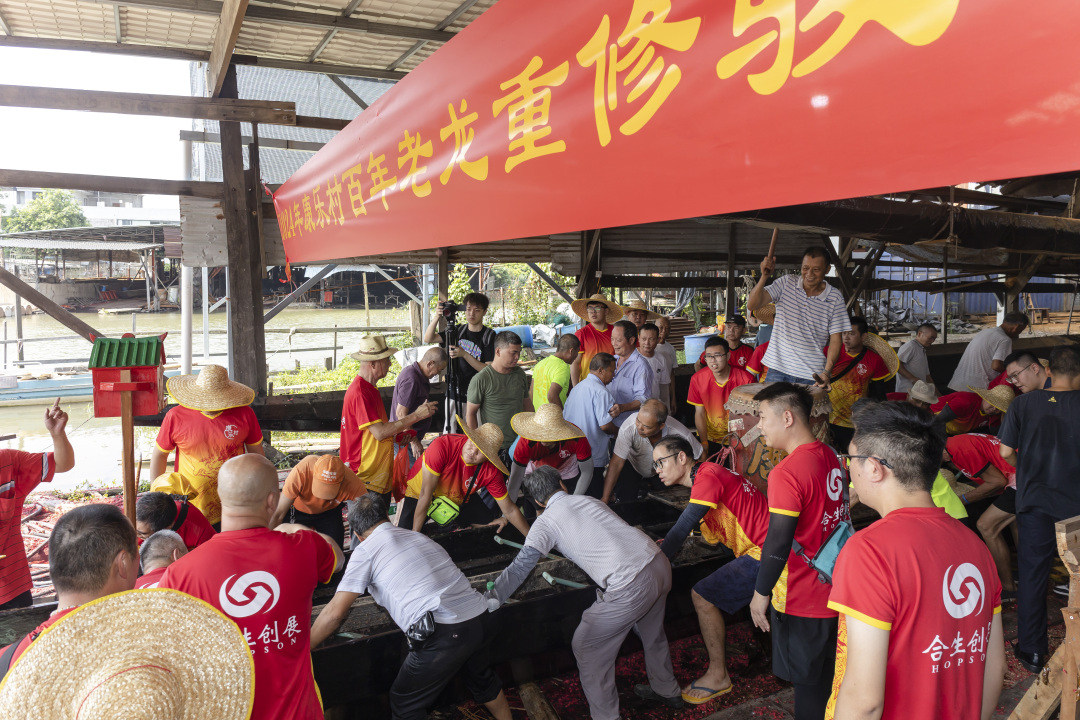 凤和联社党委委员兼联社副社长罗伟健告诉记者,龙舟文化在康乐村流传了数百年,没有随着时代前进的步伐消减,反而受到越来越多人的欢迎,尤其是年轻人。今年端午节期间,村民扒龙舟的热情高涨,导致龙舟不够用。端午节过后,村里的长者便商量将此前藏于水底的百年“老龙”重修。一是为了使用,而是为了传承。在很多村民眼里,这艘“老龙”是康乐村的文化记忆和精神符号。