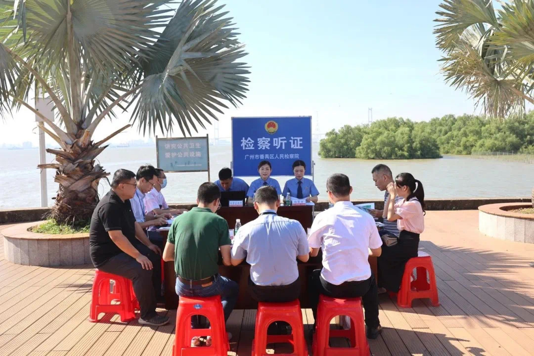 2023年7月,番禺区检察院带案下沉一线,把听证会开进海鸥岛,“搬”到红树林现场。参加人员包括行政机关代表、专家和人民监督员,在实地了解红树林受污染情况后,多方围绕众多焦点问题展开深入讨论,为解决红树林污染治理难题提供“定制化”方案。