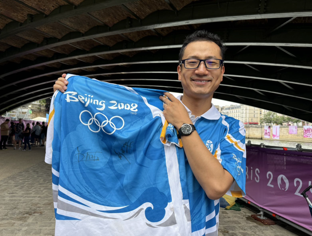 王世岳告诉记者,他买到了羽毛球等项目的门票,希望为中国羽毛球队加油,孩子们酷爱羽毛球,期待中国队头号男单石宇奇夺金。北京奥运会的志愿者服装,王世岳与吾采灵珍藏了 16年,这次是专门带到巴黎穿着。他们在塞纳河畔铺上凉席,让孩子们席地而坐。他们向记者展示了一件志愿者服,上面有刘国梁与王励勤的签名。原来,那是他们在2008年北京奥运会上中国乒乓球队包揽金牌之后获得的。他们这次没有买到巴黎奥运会乒乓球比赛的门票,不过还是希望有机会偶遇如今已经是国际乒联副主席、中国乒协主席的刘国梁。