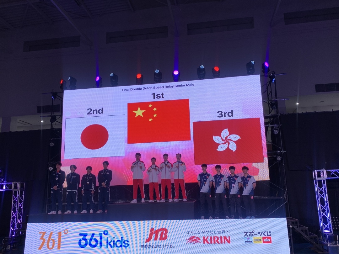 “赢啦!冠军是我们的!”7月27日,在2024年于日本川崎举办的亚洲跳绳锦标赛上,中国跳绳队广州花都代表队岑小林、李伟乐、张桂源和李荣欢以925次成绩力压日本夺冠,再次刷新4X30秒交互绳男子组世界纪录。