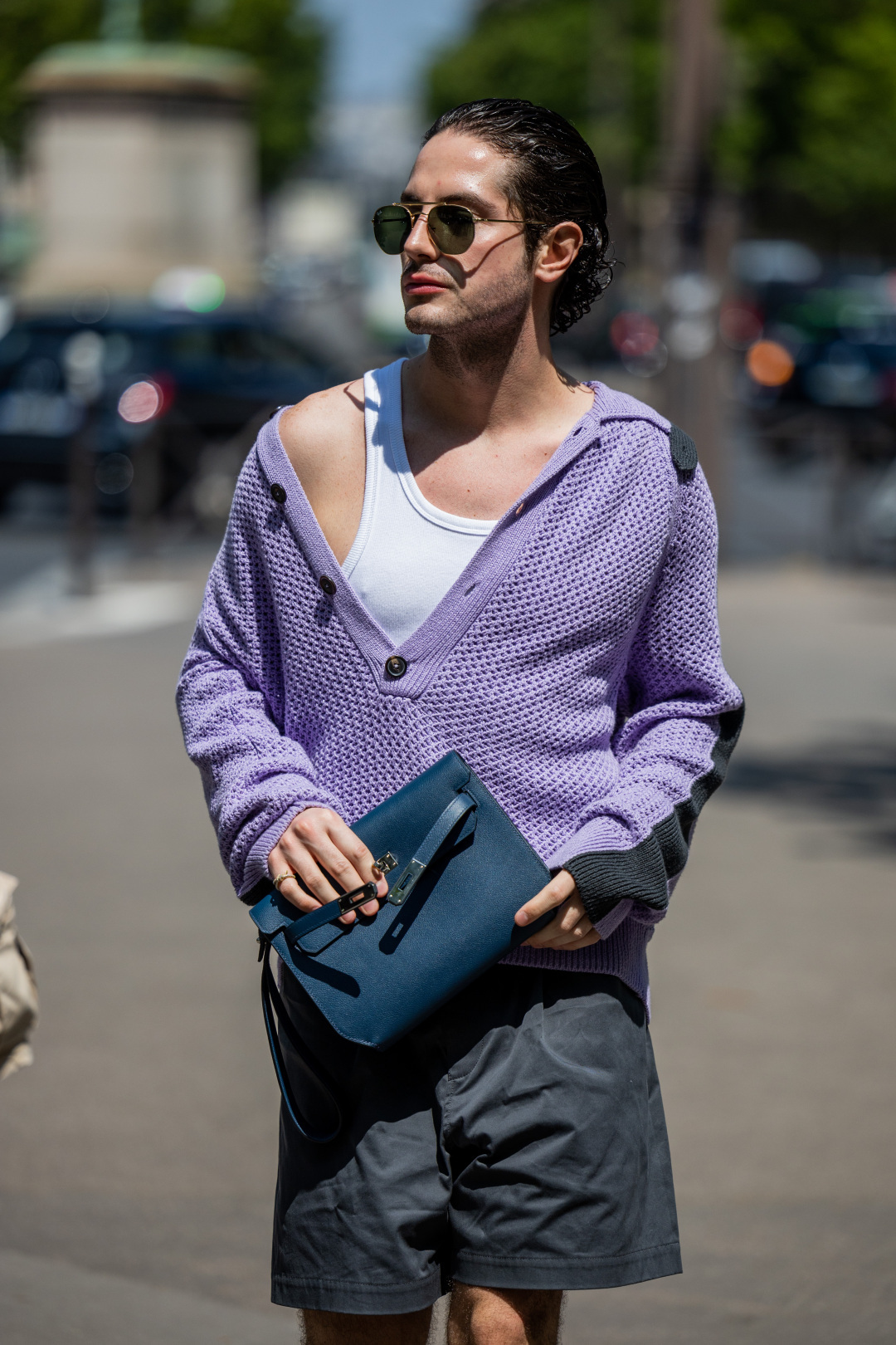 “秀场外,紫色正以千变万化的姿态展示着属于这个时代的新魅力。”专业造型师小斌表示,“法式尤莱特”的内核是自由与松弛,因此潮人街拍的舞台在穿搭风格上绝对要比正儿八经的T台秀场更精彩,也更有生命力。“先把紫色氛围拉满,再慢慢根据个人喜好与风格来细微调整。”在小斌看来,此次奥运会的比赛器材也能成为点缀整体造型的灵感源泉,如粉紫色系的橄榄球,紫色羽毛球,以及紫彩斑斓的其他更多体育项目,都可以是配饰与包包选择上直观的参考。“想象一下,羽毛球形状的紫色耳环,橄榄球形状的手拎包,多有趣呀!”小斌说道。