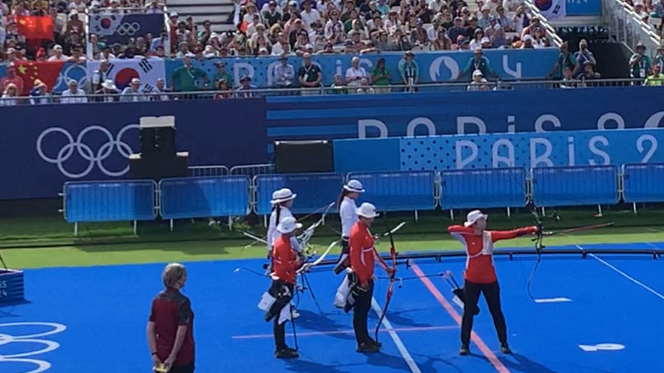 中国射箭女队夺银牌!