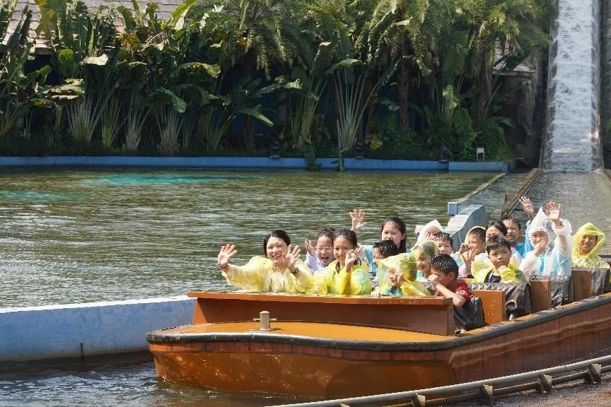 来到第三站广州融创乐园,这里深具南越文化与岭南风格,特别是千年商都、海上丝路、岭南印象、南越古国、五羊传说、梦幻花园6大主题区域穿越古今,给同学们的研学之旅带来妙不可言的欢乐体验。在全感官超震撼的8K飞行影院中,孩子们体验了一次“飞跃广东”的奇妙之旅。他们仿佛化身为自由飞翔的鸟儿,从高空俯瞰广东的壮丽景象。千年商都的繁华、海上丝路的壮丽、岭南印象的韵味绵延相连,让人流连忘返。