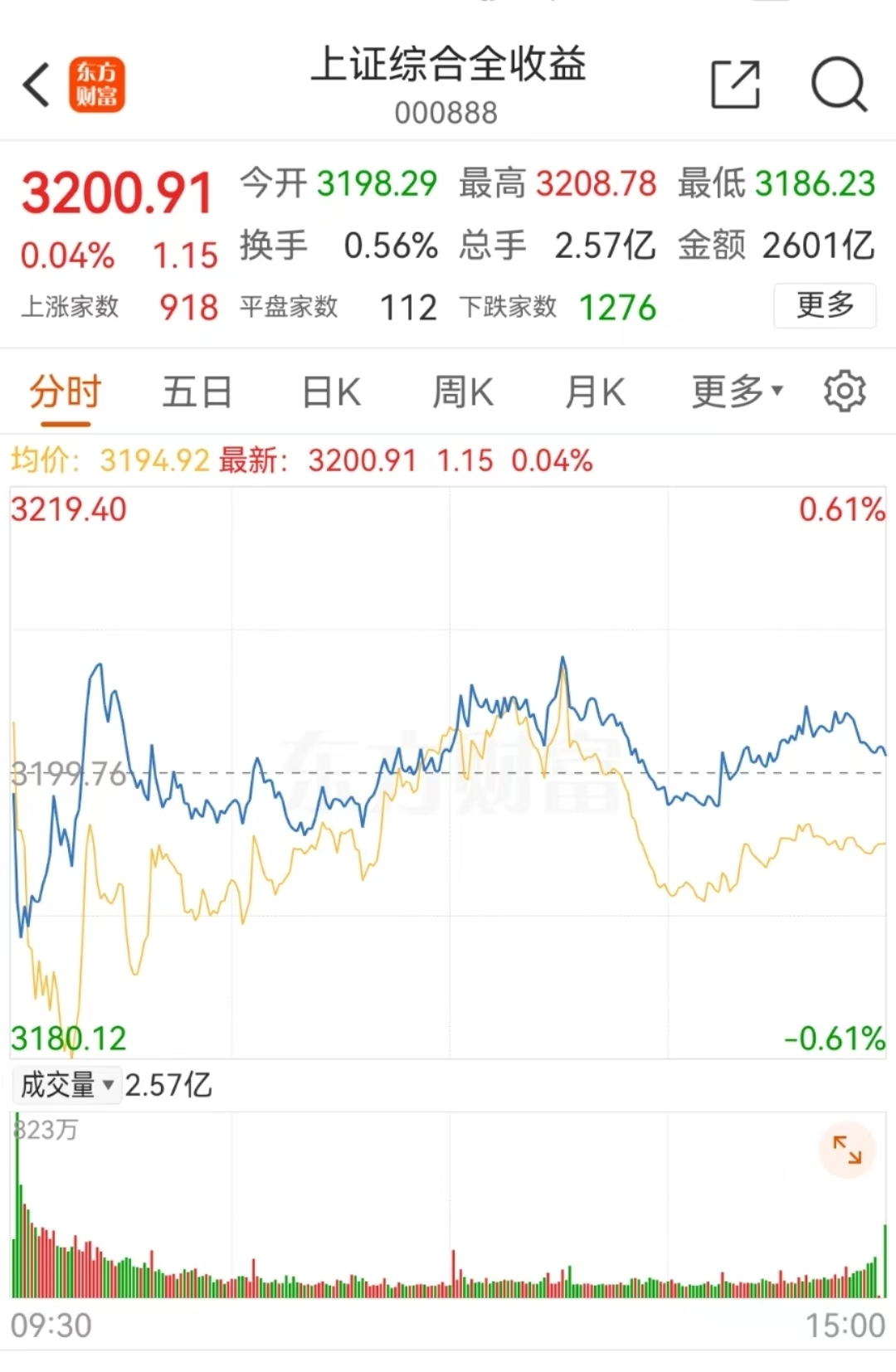 “000888”首秀来了!7月29日,上海证券交易所与中证指数有限公司正式发布上证综合全收益指数实时行情,同时将指数代码和简称分别调整为“000888”和“上证收益”。截至收盘,上证综合全收益指数涨0.04%,报3200.91点。